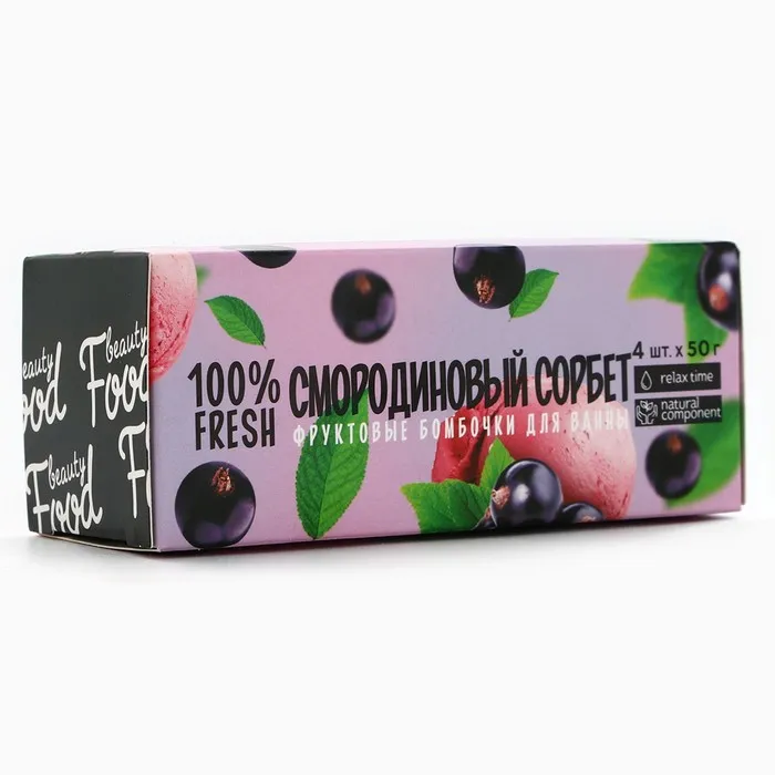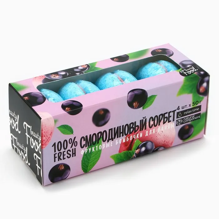 Бомбочки для ванны «Смородиновый сорбет», 4×50 г, BEAUTY FOOD — Характеристики