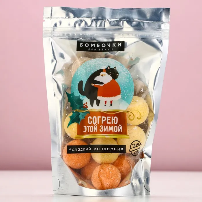 Бомбочки для ванны «Согрею этой зимой!», 12×20 г, аромат мандарина, Чистое счастье — Характеристики