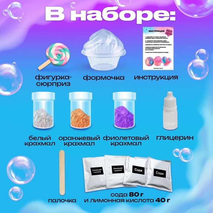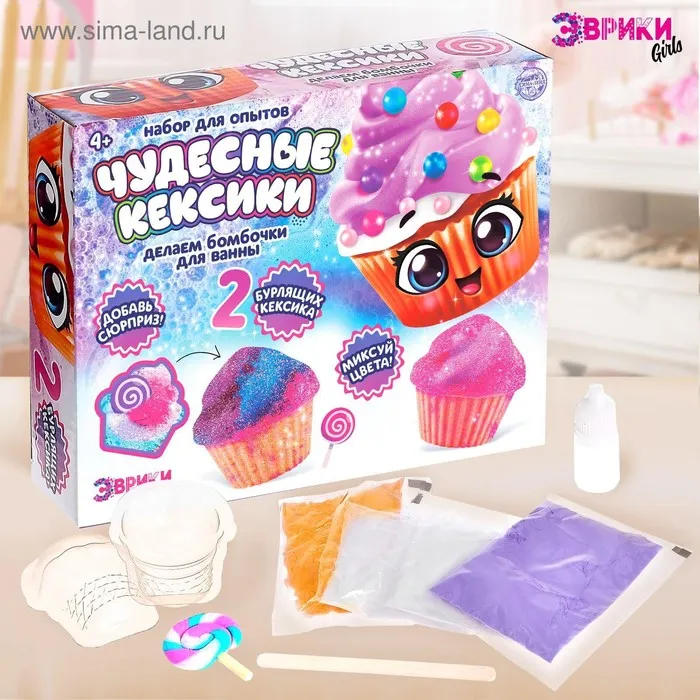 Бомбочки для ванны своими руками «Чудесные кексики», детские, набор для опытов — Характеристики