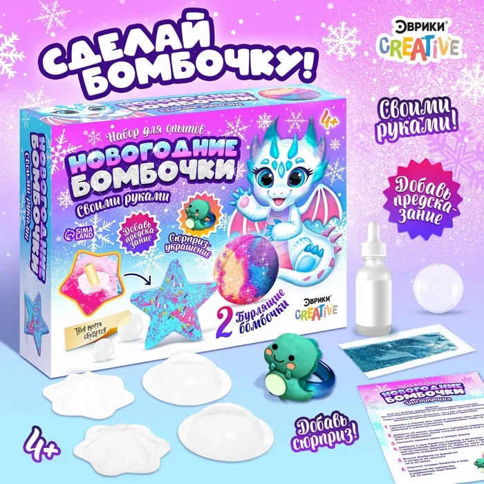 Бомбочки для ванны своими руками «Новогодние бомбочки: Дракон», детские, набор для опытов — Характеристики