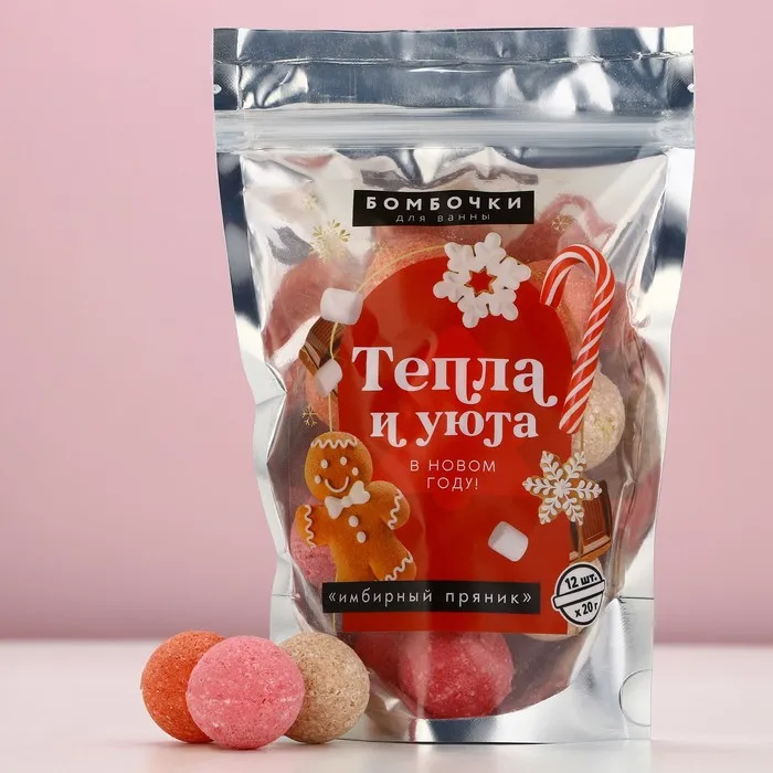 Бомбочки для ванны «Тепла и уюта», 12×20 г, аромат имбирный пряник, Чистое счастье — Характеристики