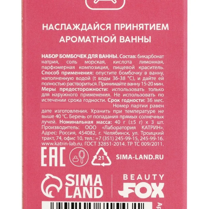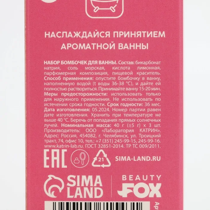 Бомбочки для ванны «В ресурсе», 3×40 г, аромат клубники, Beauty Fox — Характеристики
