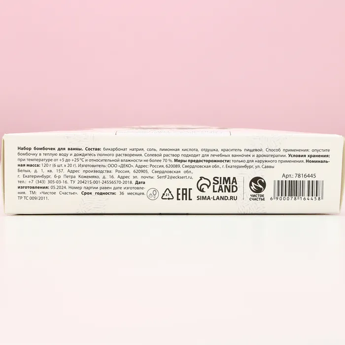 Бомбочки для ванны «Верь в чудеса!», 6×20 г, аромат медового пирога, Чистое счастье — Характеристики
