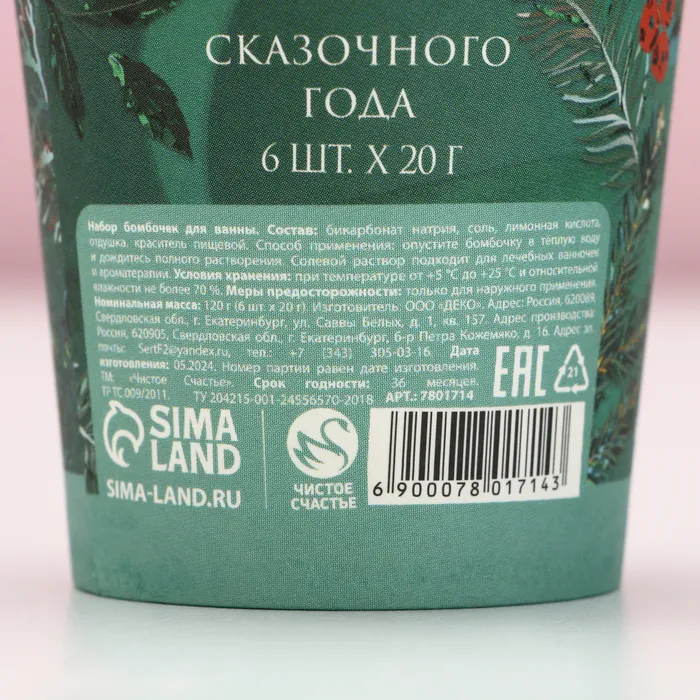 Бомбочки для ванны «Верь в чудеса», 6×20 г, Чистое счастье — Характеристики