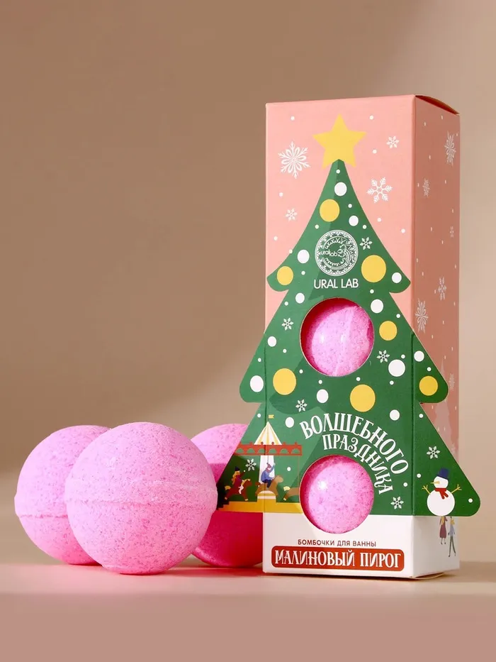 Бомбочки для ванны «Волшебного праздника», аромат малиновый пирог, 3×120 г, URAL LAB — Характеристики