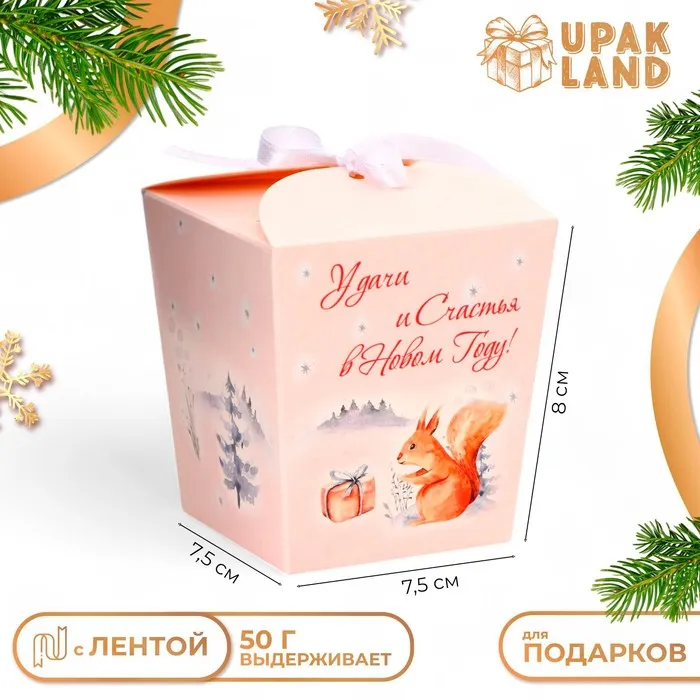 Бонбоньерка, новогодняя подарочная упаковка «Удачи и счастье в Новом Году», 7.5×8×7.5 см — Характеристики