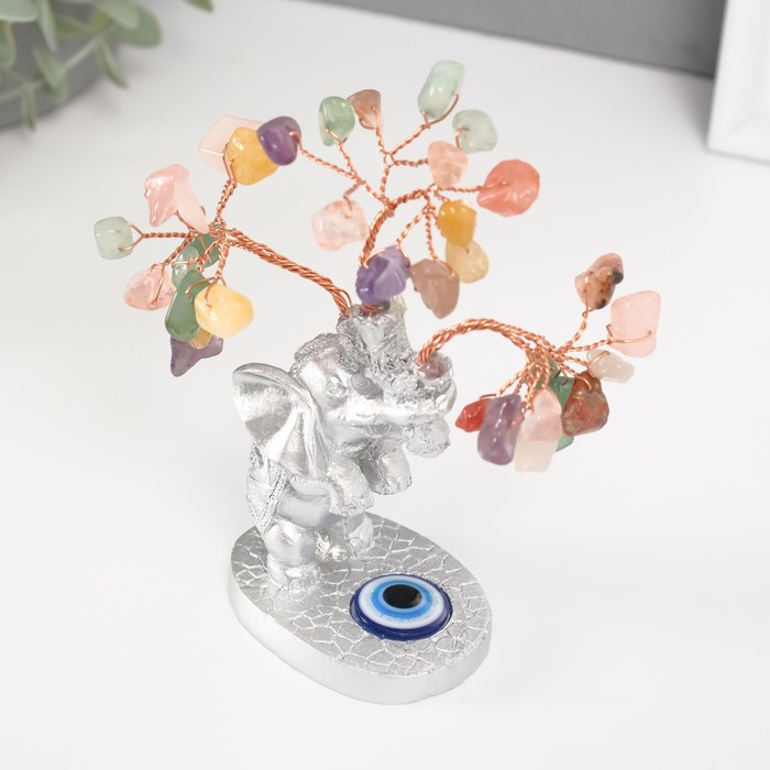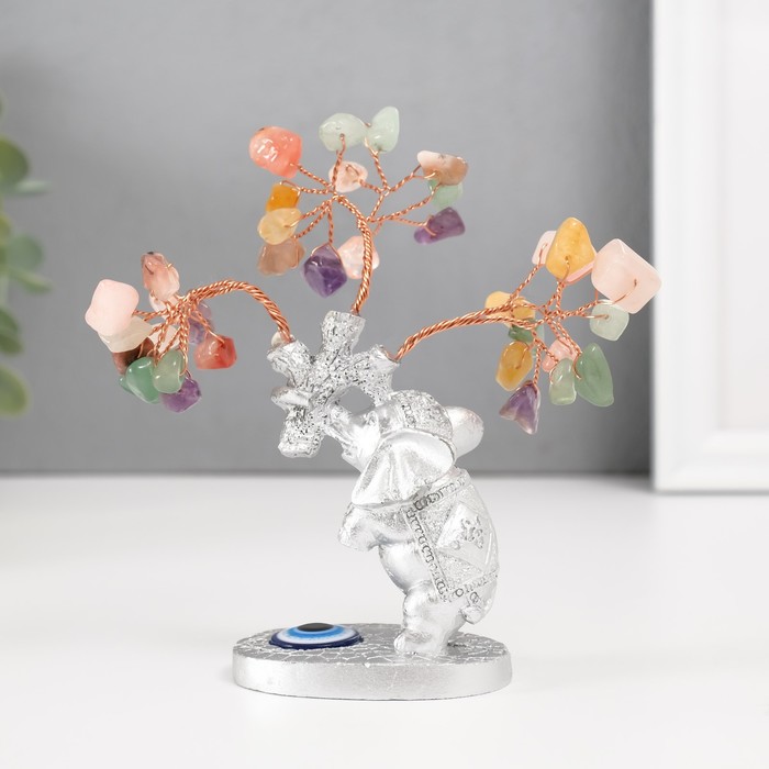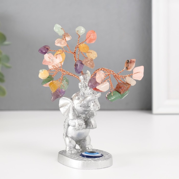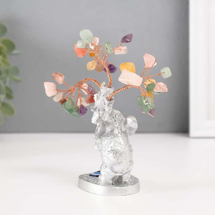 Бонсай декоративный «Денежное дерево: Серебристый слон с денежным деревом», цветные 36 камней, 6.2×4.5×13.5 см