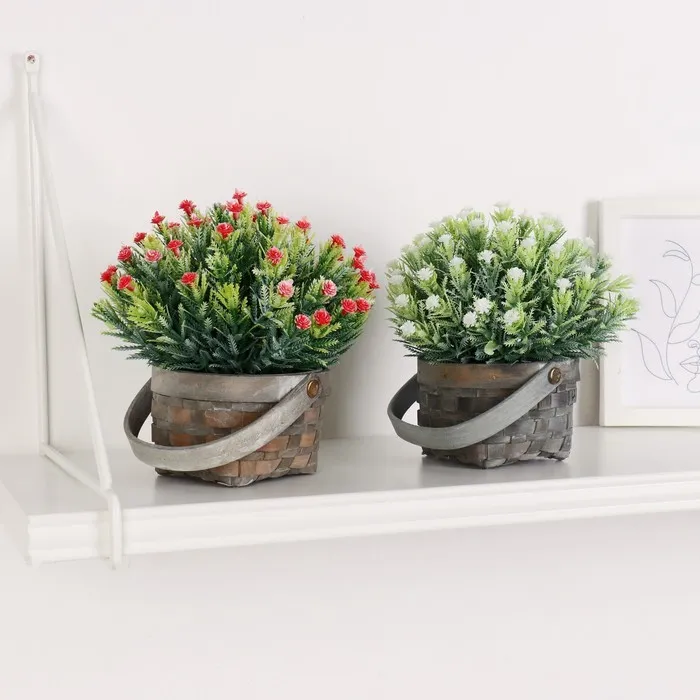 Искусственный цветок в горшке «Остролист с цветочками», 8×18 см, МИКС