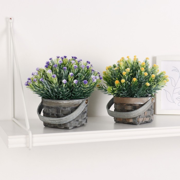 Искусственный цветок в горшке «Лаванда куст», 7.5×19 см, МИКС