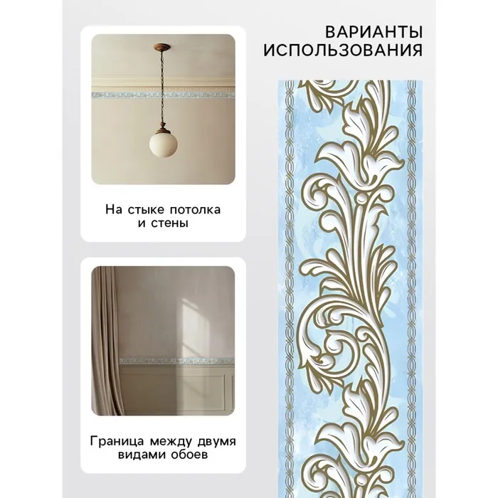- Декорирование стыков стены и потолка – бордюр помогает сгладить переход между поверхностями, делая интерьер более законченным и гармоничным.