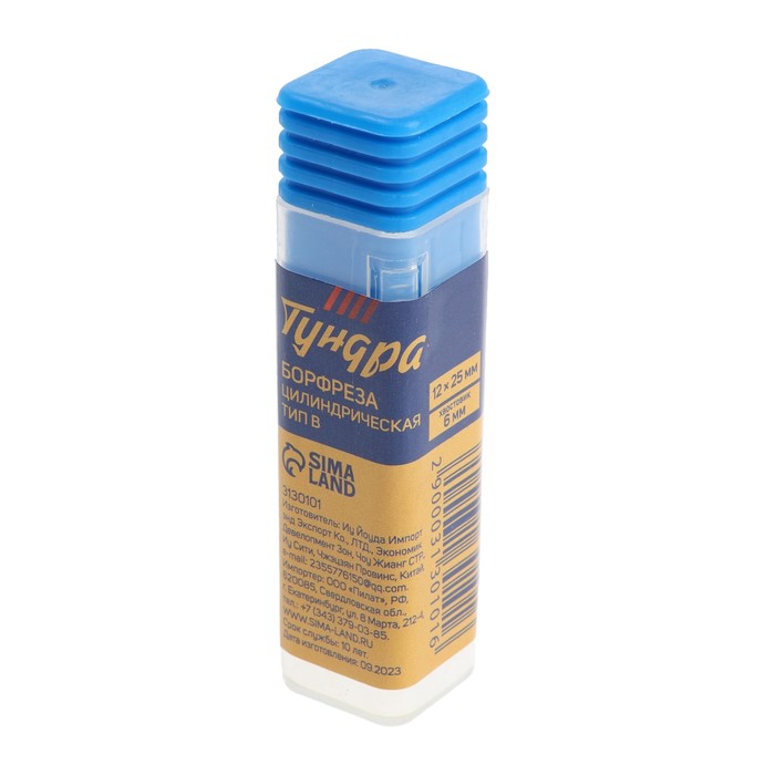 Борфреза ТУНДРА тип B цилиндрическая, 12×25 мм, хвостовик 6 мм — Характеристики