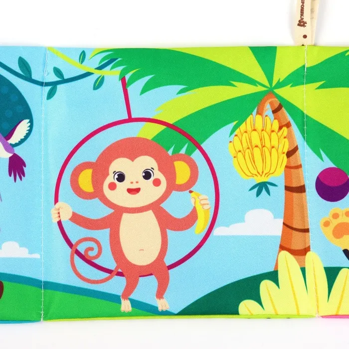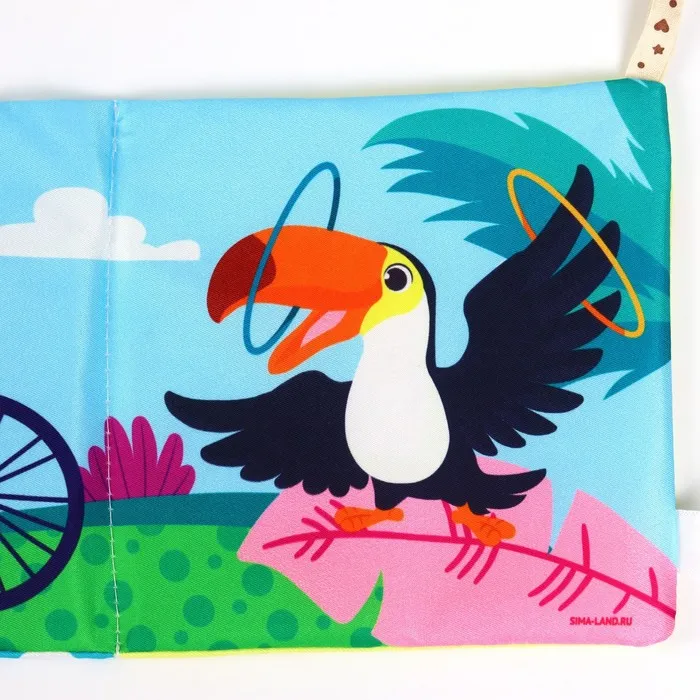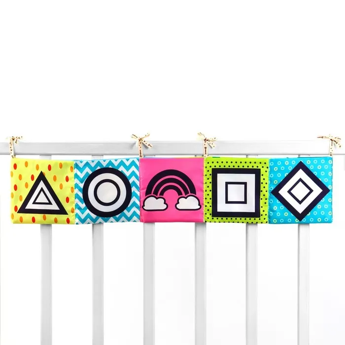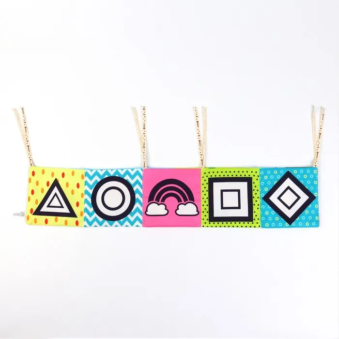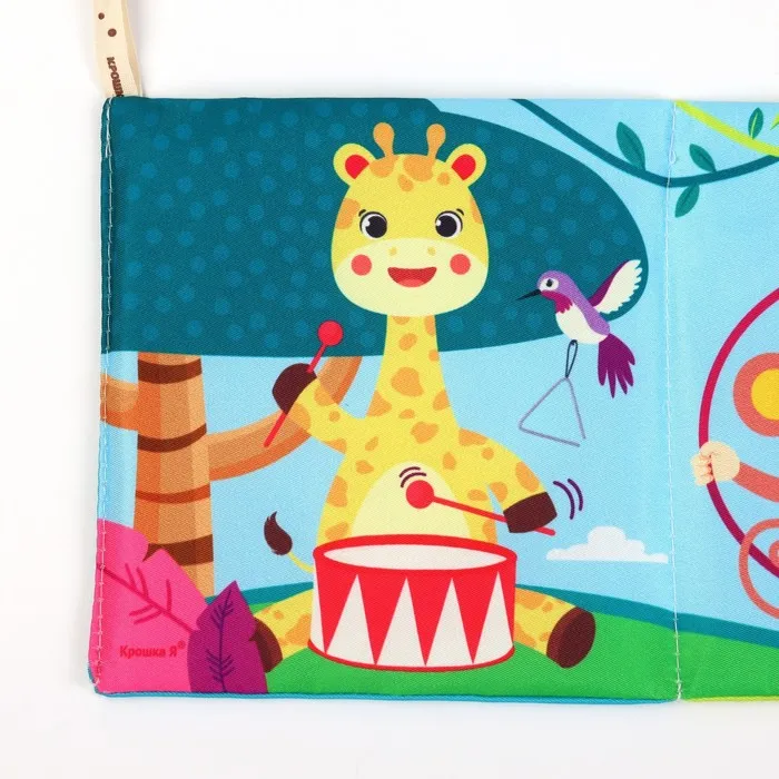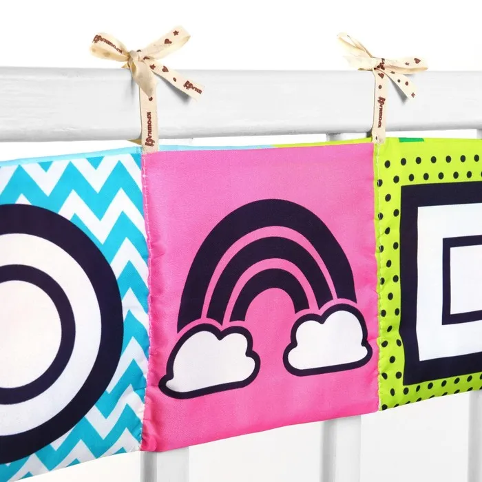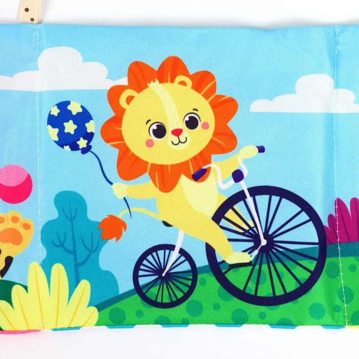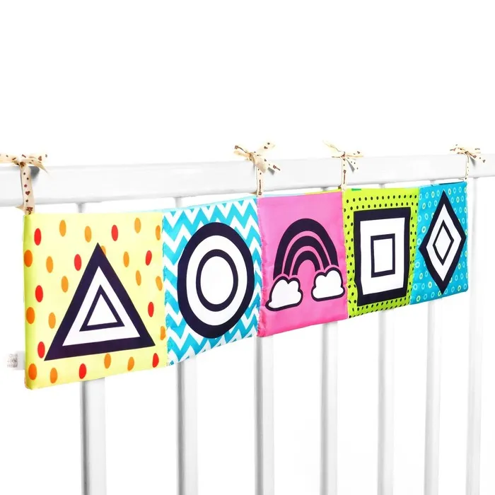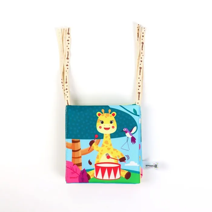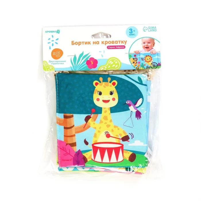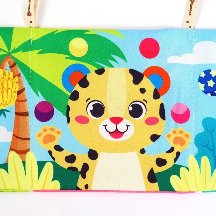 Мягкая книжка-бортик имеет красочные развивающие картинки, привлекающие внимание малыша. Книжка имеет ленточки за которые её можно подвесить на кроватку.
