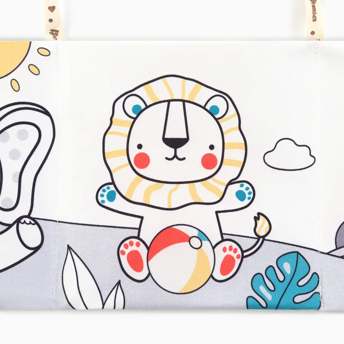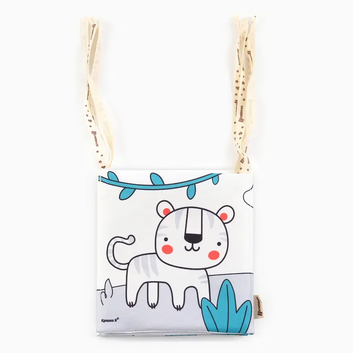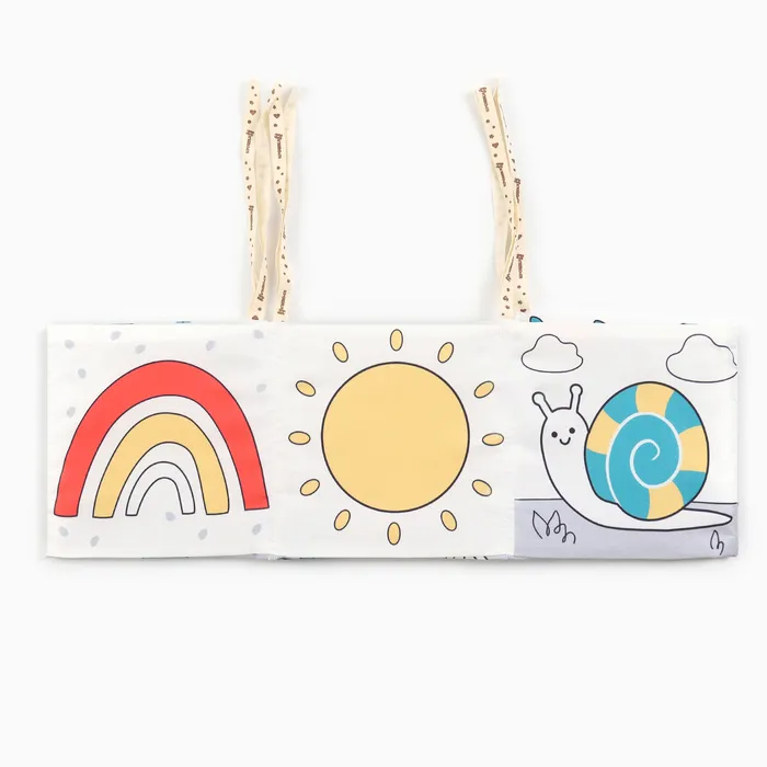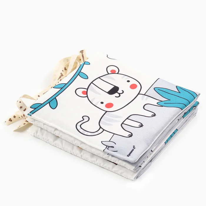 Мягкая книжка-бортик имеет красочные развивающие картинки, привлекающие внимание малыша. Книжка имеет ленточки за которые её можно подвесить на кроватку.