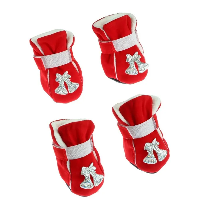 Ботинки для собак "Бубенцы", набор 4 шт, размер XL, красные — Характеристики