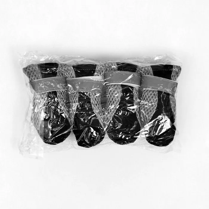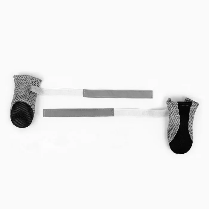 Ботинки изготовлены из полиэстера - прочного и легкого материала, который не скользит и хорошо сохраняет форму. Они могут использоваться для защиты лап вашего питомца от различных повреждений, таких как порезы, царапин, также защищают от холода и влаги, что особенно важно в дождливую погоду.