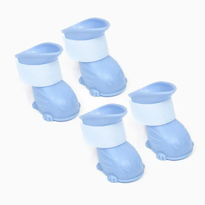 Ботинки изготовлены из полиэстера - прочного и легкого материала, который не скользит и хорошо сохраняет форму. Они могут использоваться для защиты лап вашего питомца от различных повреждений, таких как порезы, царапин, также защищают от холода и влаги, что особенно важно в дождливую погоду.