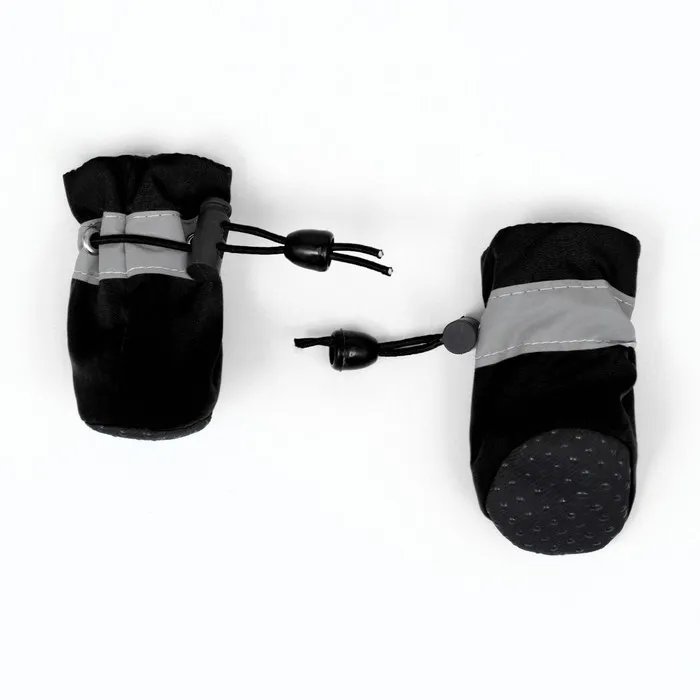 Ботиночки для животных это отличная защита лап для Вашего любимого питомца. Обувь для мелких и средних пород изготовлена из качественного водоотталкивающего материала с присутствием противоскользящей подошвы. Подкладка ботиночка выполнена из утепленной ткани. Затяжка-резинка обеспечивает плотное прилегание к лапке питомца. А светоотражающая полоса на каждом ботинке, поможет вашему питомцу не потерятся в темное время суток. Порадуйте своего любимца. Приобретая Обувь для собак Вы получаете защиту подушечек лап вашего питомца от порезов и ушибов. А так же удобно не мыть лапки после прогулки, а просто бросить в стиральную машину ботиночки. Берегите своих питомцев