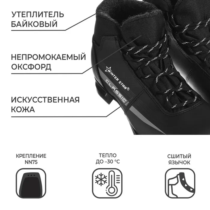 Ботинки лыжные Winter Star classic, NN75, р. 40, цвет чёрный — Характеристики