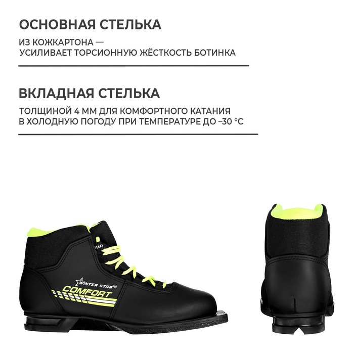 Основная стелька изготовлена из кожкартона, усиливает торсионную жёсткость ботинка. Вкладная стелька толщиной 4 мм — для увеличения комфорта в холодную погоду при температуре до –30 °С.