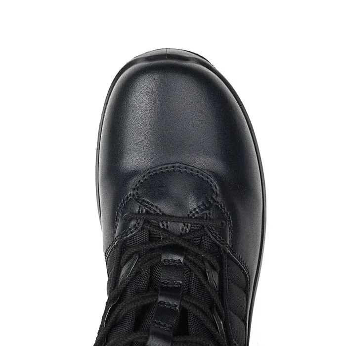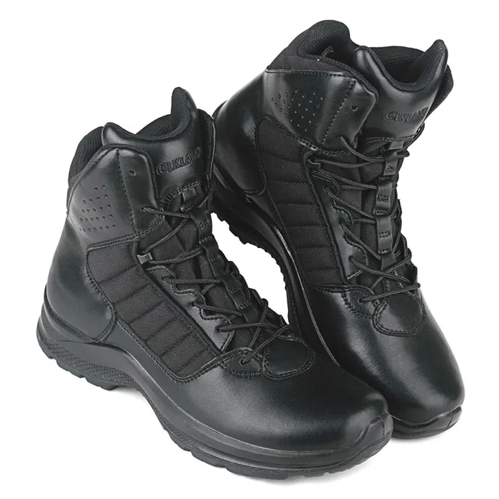 Демисезонные тактические ботинки-берцы Elkland! Верх изготовлен из высококачественной водонепроницаемой натуральной кожи с текстильными вставками, имеющими водонепроницаемое покрытие. Широкий мягкий кант комфортно прилегает к ноге и препятствует проникновению пыли, влаги и пр. Подкладка выполнена из хлопковой натуральной ткани, что особенно приятно в жаркий период года. Вкладная съемная стелька выполнена из высокоэластичного полиуретана с текстильным верхним слоем, обладающая гигроскопичностью и паропроницаемостью. Подошва с промежуточным слоем из ПУ литьевого метода крепления имеет водонепроницаемое сцепление. Резиновый глубокий рельеф протектора подошвы обеспечивает прочное сцепление на неровной поверхности. В данной модели используется повышенной прочности задник и подносок. Специально разработанная форма колодки позволяет эксплуатировать обувь комфортно при длительной ходьбе. Модель выполнена без металлической фурнитуры для легкого прохождения любой проверки безопасности.