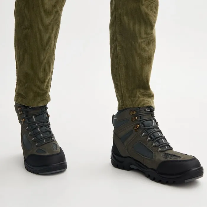 Мужские ботинки WANNGO из натурального нубука предназначены для активного отдыха и повседневных прогулок по городу. В конструкции верха предусмотрен "глухой" клапан, обеспечивающий защиту стопы в обуви от попадания посторонних предметов, пыли и пр. Водонепроницаемая и «дышащая» подкладка с мембраной WG-TEX обеспечивает идеальный комфорт даже в сырую погоду. Вкладная стелька Smart Insole комфортно поддерживает стопу и обладает амортизационными свойствами. Для защиты от механических повреждений носочная части ботинка имеет накладку из полимерного материала ТПУ. Двухслойная подошва с промежуточным слоем из пористого полиуретана облегчает вес ботинка, сохраняет тепло и снимает нагрузку во время ходьбы. Литьевой метод крепления верха к подошве гарантирует водонепроницаемое соединение. Нижний ходовой слой выполнен из резины с глубоким протектором создает надежное сцепление с грунтом и препятствует скольжению.