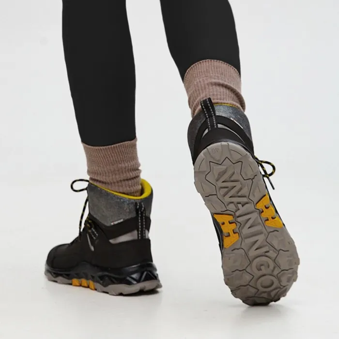 Женские демисезонные ботинки WANNGO из нубука для активного отдыха на природе и прогулок по городу. Благодаря продуманной форме колодки и удобной шнуровки, ботинки идеально садятся по ноге. В конструкции верха предусмотрен "глухой" клапан, обеспечивающий защиту стопы в обуви от попадания посторонних предметов, пыли и пр. Подкладка с мембраной WG-TEX обеспечивает идеальный комфорт даже в сырую погоду. Для защиты от механических повреждений носочная часть ботинка усилена ТПУ накладкой. Вкладная стелька SLIM SOFT INSOLE из структурированного микропористого полимерного материала с текстильным верхнем слоем комфортно поддерживает стопу. Двухслойная подошва с промежуточным слоем из облегченного полиуретана снижает вес ботинка, сохраняет тепло и снимает ударную нагрузку во время ходьбы. Нижний ходовой слой выполнен из резины с глубоким протектором и яркими вставками, из-за чего создается надежное сцепление с грунтом и препятствующим скольжению. Литьевой метод крепления верха к подошве гарантирует водонепроницаемое соединение.