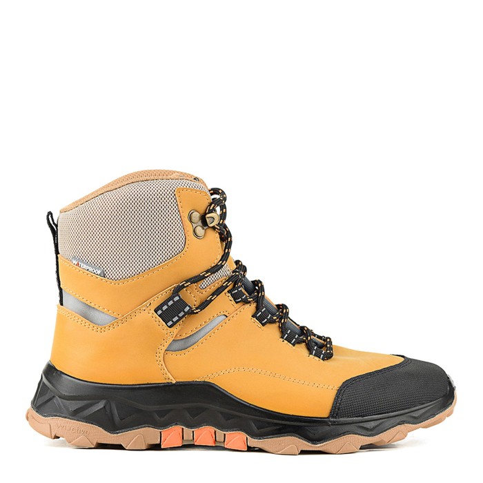 Женские демисезонные ботинки WANNGO из нубука для активного отдыха на природе и прогулок по городу. Благодаря продуманной форме колодки и удобной шнуровки, ботинки идеально садятся по ноге. В конструкции верха предусмотрен "глухой" клапан, обеспечивающий защиту стопы в обуви от попадания посторонних предметов, пыли и пр. Подкладка с мембраной WG-TEX обеспечивает идеальный комфорт даже в сырую погоду. Для защиты от механических повреждений носочная часть ботинка усилена ТПУ накладкой. Вкладная стелька SLIM SOFT INSOLE из структурированного микропористого полимерного материала с текстильным верхнем слоем комфортно поддерживает стопу. Двухслойная подошва с промежуточным слоем из облегченного полиуретана снижает вес ботинка, сохраняет тепло и снимает ударную нагрузку во время ходьбы. Нижний ходовой слой выполнен из резины с глубоким протектором и яркими вставками, из-за чего создается надежное сцепление с грунтом и препятствующим скольжению. Литьевой метод крепления верха к подошве гарантирует водонепроницаемое соединение.