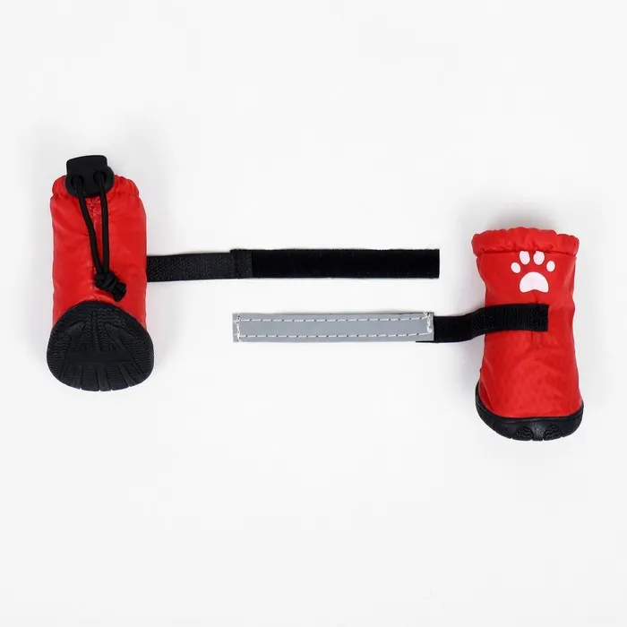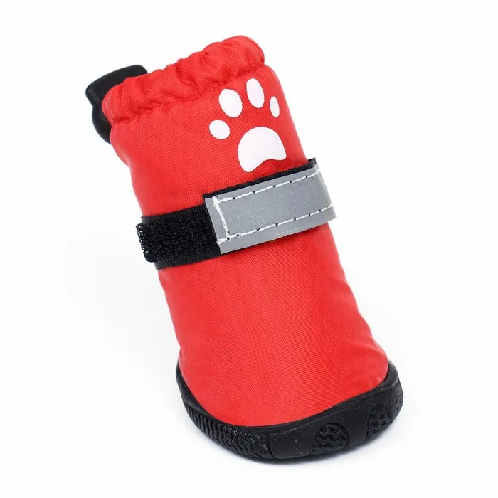 Застёжка-липучка надёжно фиксирует обувь , что позволяет легко надевать и снимать. Также для безопасности питомца липучка имеет светоотражающую ленту.