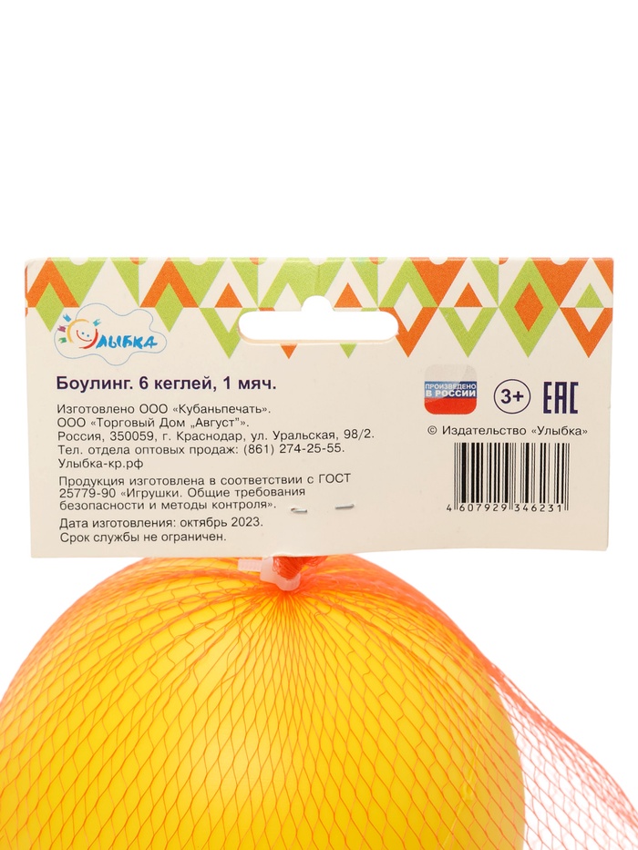 Боулинг детский, набор: 6 кеглей 21×7 см, 1 мяч d=6.5 см — Характеристики