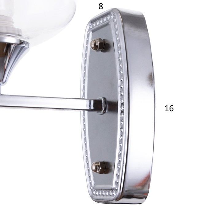 - Холодный металлический блеск: Хромированное основание придаёт бра строгую, современную выразительность. Такой оттенок легко сочетается с глянцевыми поверхностями, зеркалами и светлыми стенами, подчёркивая чистоту интерьера.