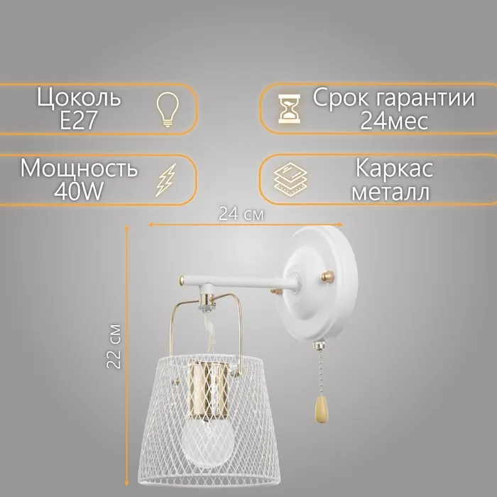 Бра 662404/1 40Вт E27белый-золото 24х15х22 см — Характеристики