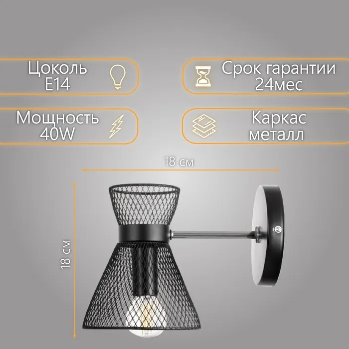 Бра 662413/1 40Вт E14 черный 18х12х18 см — Характеристики