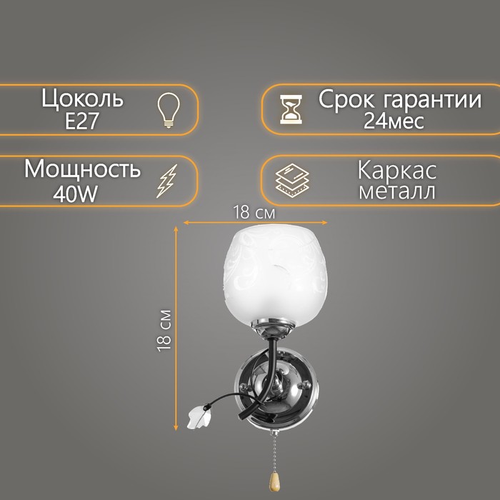 Бра "Алира" 1х40Вт E27 черный-хром 18х15х18 см. — Характеристики