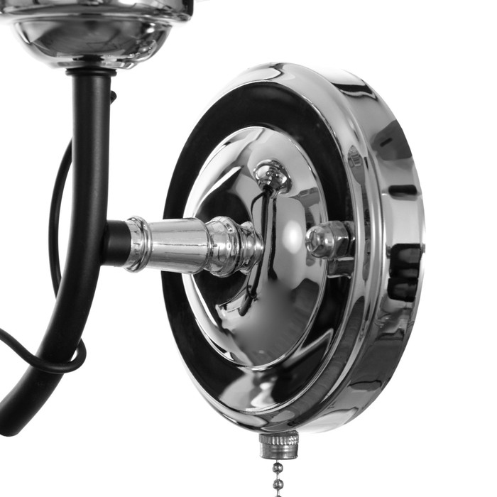 Классика в современном исполнении Настенное бра «Алира» с плафоном — компактный светильник с контрастным черно-хромированным дизайном. Универсальное решение для основных жилых помещений.