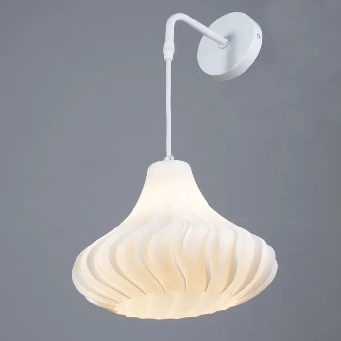 - Современный дизайн: Белый металлический корпус и декоративный пластиковый плафон создают стильный образ, который легко впишется в интерьер в стиле модерн или хайтек. Такой светильник станет акцентом вашего пространства.