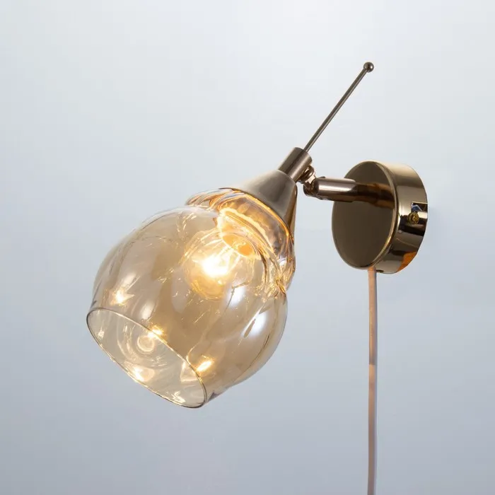 - Современный дизайн: Золотой металлический корпус и теплый медовый плафон создают гармоничный образ, который легко впишется в интерьер в стиле модерн, хай-тек или современный минимализм. Такое бра станет акцентом вашего пространства, добавляя нотку роскоши и уюта.