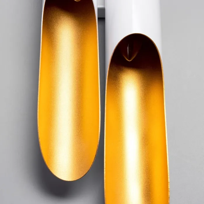 • Дизайнерское решение: Линейная конструкция длиной 60 см с чередованием белых и золотистых элементов. Добавляет интерьеру динамики без перегрузки пространства.
