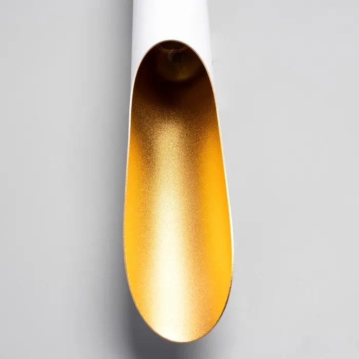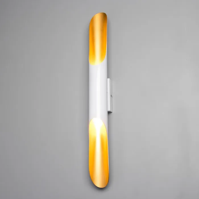 • Дизайн в стиле хай-тек: Белый металлический корпус и золотые элементы создают современный образ, который легко впишется в интерьер в стиле минимализм или дизайнерский подход. Такое бра станет акцентом вашего пространства, добавляя нотку роскоши.