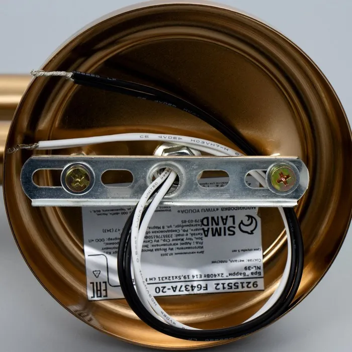 - Два источника света: Бра оснащено двумя цоколями E14, что обеспечивает качественное освещение и возможность регулировать атмосферу с помощью ламп накаливания или светодиодных ламп.