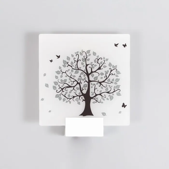 - Оригинальный дизайн: Белый металлический корпус и квадратный плафон с изображением дерева создают гармоничный образ, который легко впишется в интерьер в стиле прованс, флористика или современный минимализм. Такое бра станет акцентом вашего пространства, добавляя нотку природы и уюта.