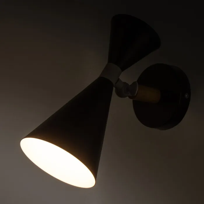 - Современный дизайн: Черный металлический корпус с конусным плафоном создает элегантный и гармоничный образ. Такое бра легко впишется в интерьеры в стиле модерн, хайтек или скандинавский минимализм, добавляя нотку изысканности.
