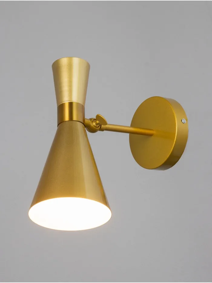 - Универсальный стиль: Золотой металлический плафон придает светильнику роскошный вид, делая его центральным элементом декора. Бра гармонично впишется в интерьеры в стиле модерн, хайтек или неоклассика, добавляя ноту элегантности.