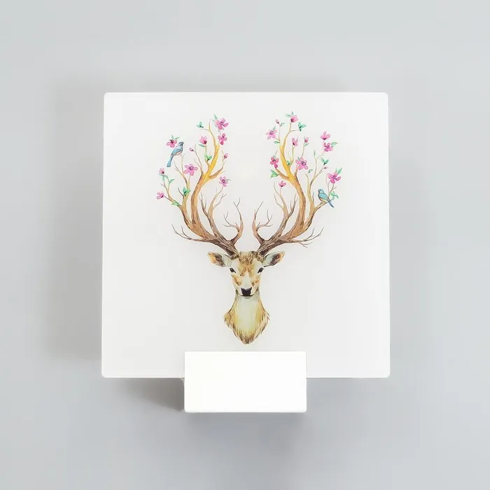 - Дизайн с характером: Плафон квадратной формы украшен рисунком, вдохновлённым природой. Такая деталь добавляет интерьеру ощущение связи с лесом, но остаётся ненавязчивой и универсальной.