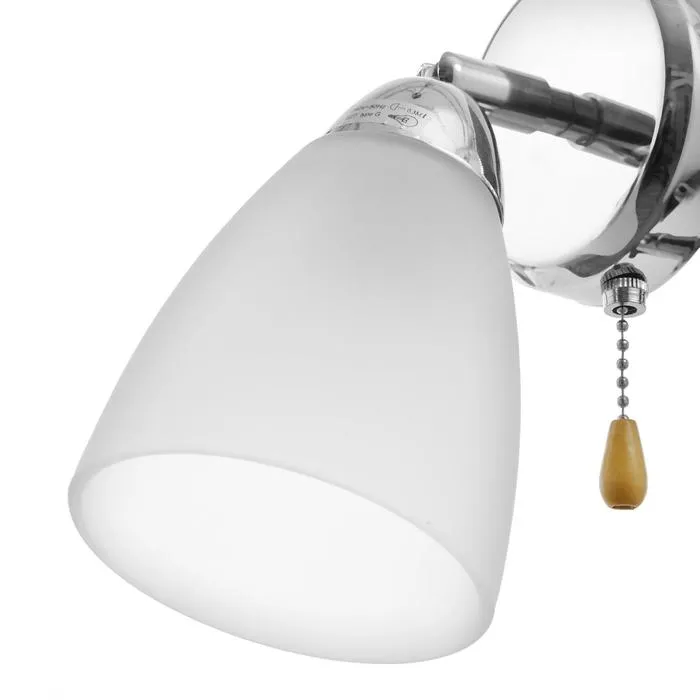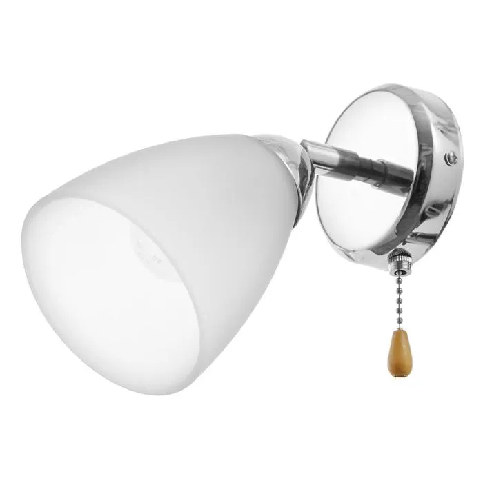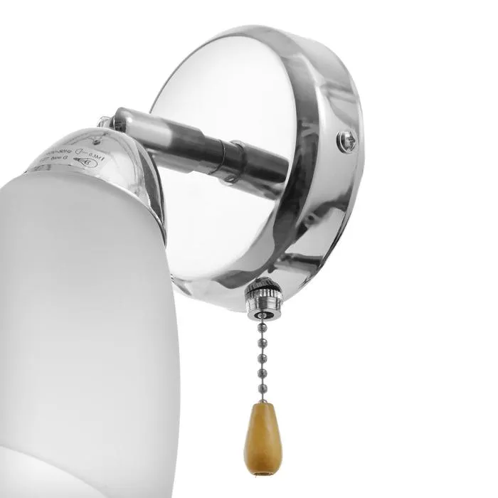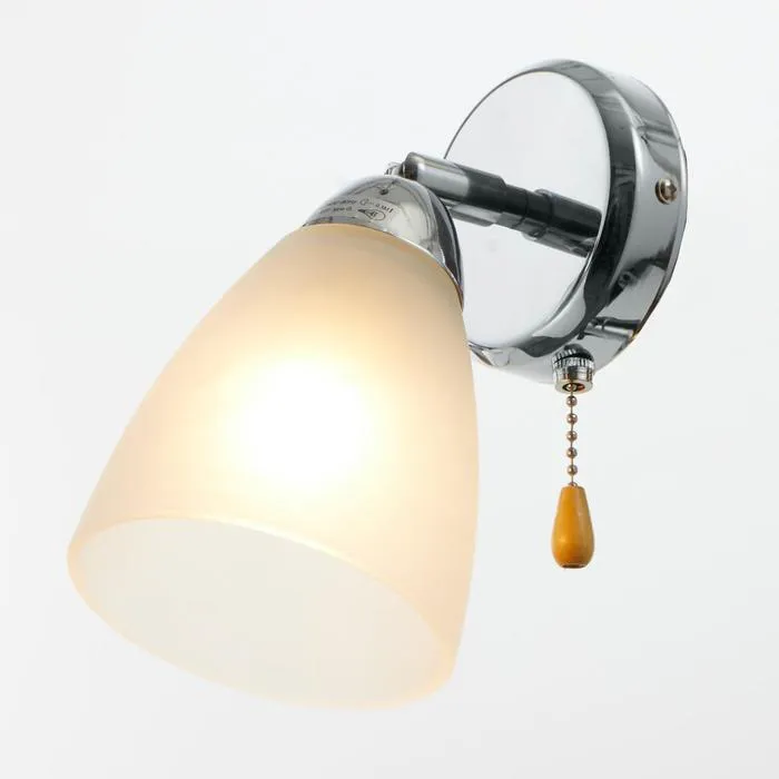 Настенный светильник с хромированным основанием и стеклянным плафоном станет стильным дополнением интерьера. Его лаконичный дизайн в стиле минимализм подойдёт для гостиных, спален, кухонь или прихожих, создавая уютную атмосферу и мягкое освещение.