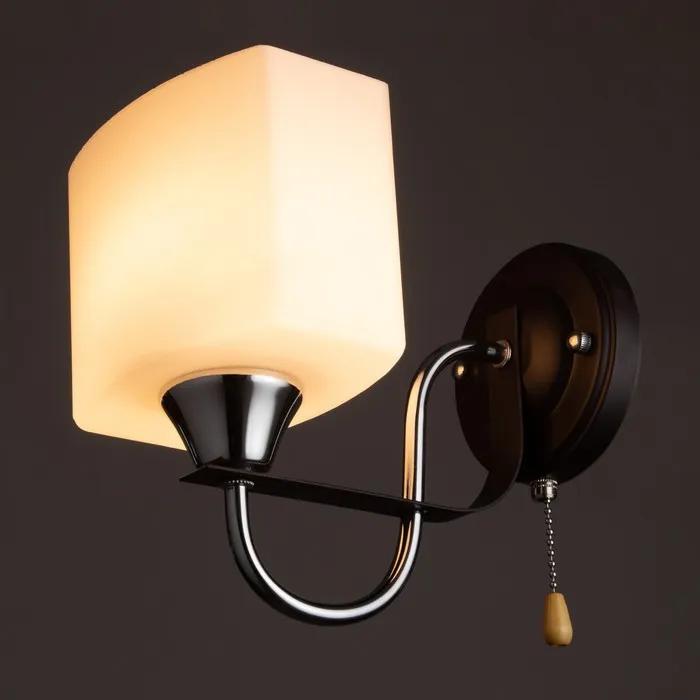 - Универсальность применения: Светлый стеклянный плафон мягко рассеивает свет в спальне, гостиной или кафе. Сочетание хромированных и коричневых элементов добавляет интерьеру глубины.
