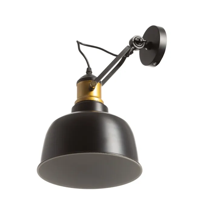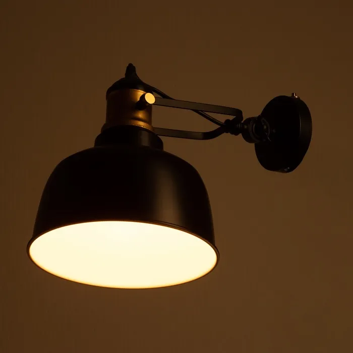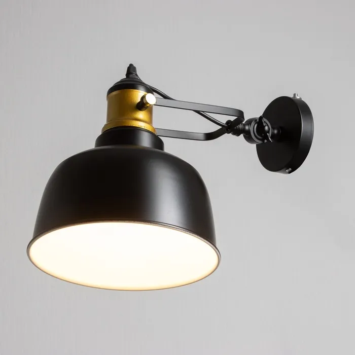 • Лофт как стиль жизни: Бра выполнено в духе индустриального дизайна — чёрный металл, открытые формы, минимум декора. Такой светильник становится частью истории помещения, особенно если интерьер включает кирпичные стены, деревянные поверхности или металлические элементы.