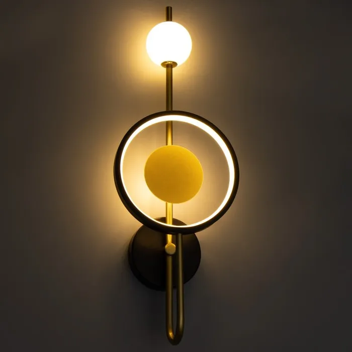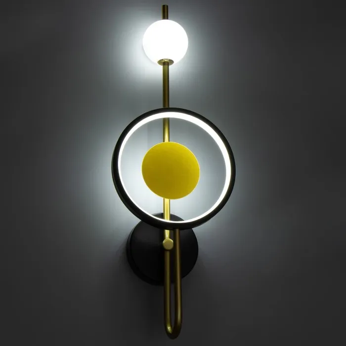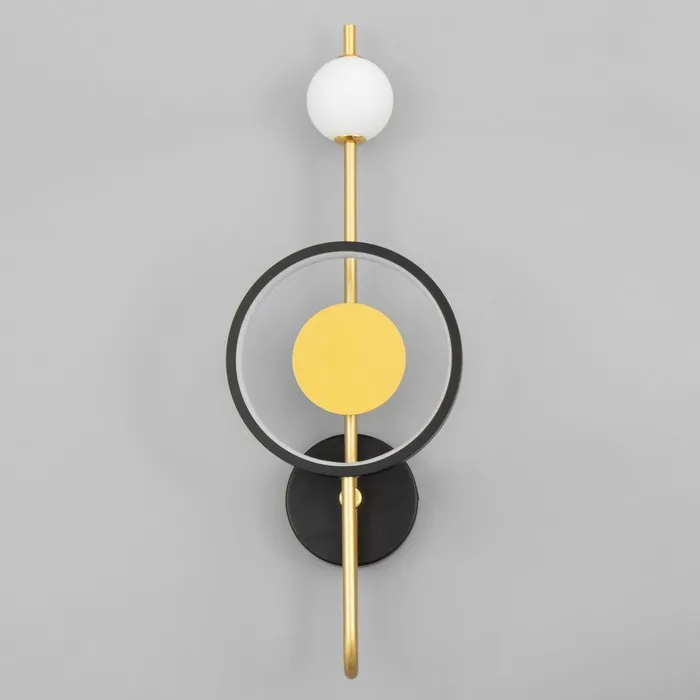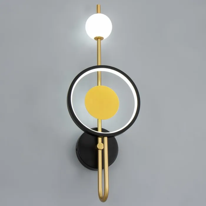 Стиль и технологичность: Бра Лорри — не просто освещение, а часть художественного решения интерьера. Чёрно-золотая отделка и светлые тона рассеивателя работают вместе, чтобы сделать свет мягче, а дизайн — законченным и запоминающимся.