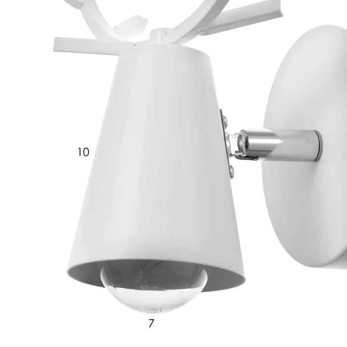 - Чистый световой поток: Плафон из белого металла направляет свет равномерно, создавая достаточную освещённость для чтения, отдыха или работы. Цоколь E27 поддерживает установку ламп накаливания мощностью до 40 Вт.