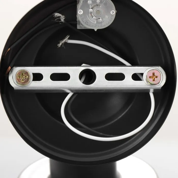 - Стекло и графичность металла: Плафон из тонированного стекла мягко рассеивает свет, добавляя ему глубины. Чёрное основание из металла усиливает контраст и делает устройство заметным даже в выключенном состоянии.