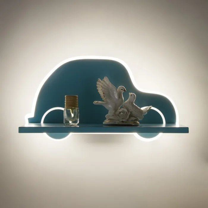 Выбирайте бра в виде автомобиля с синей LED-подсветкой — для детской комнаты, где важны игра, фантазия и любовь к машинам.